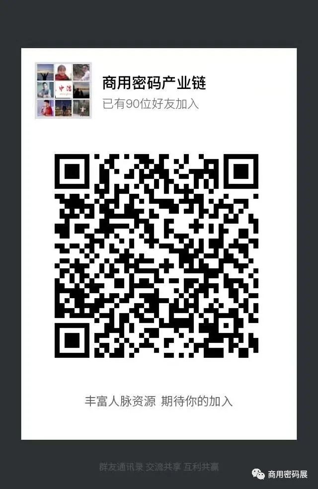 进商用密码产业链群”,请加微 13262735588 或扫描二维码,备注商用密码+公司名称+姓名+职位+手机号