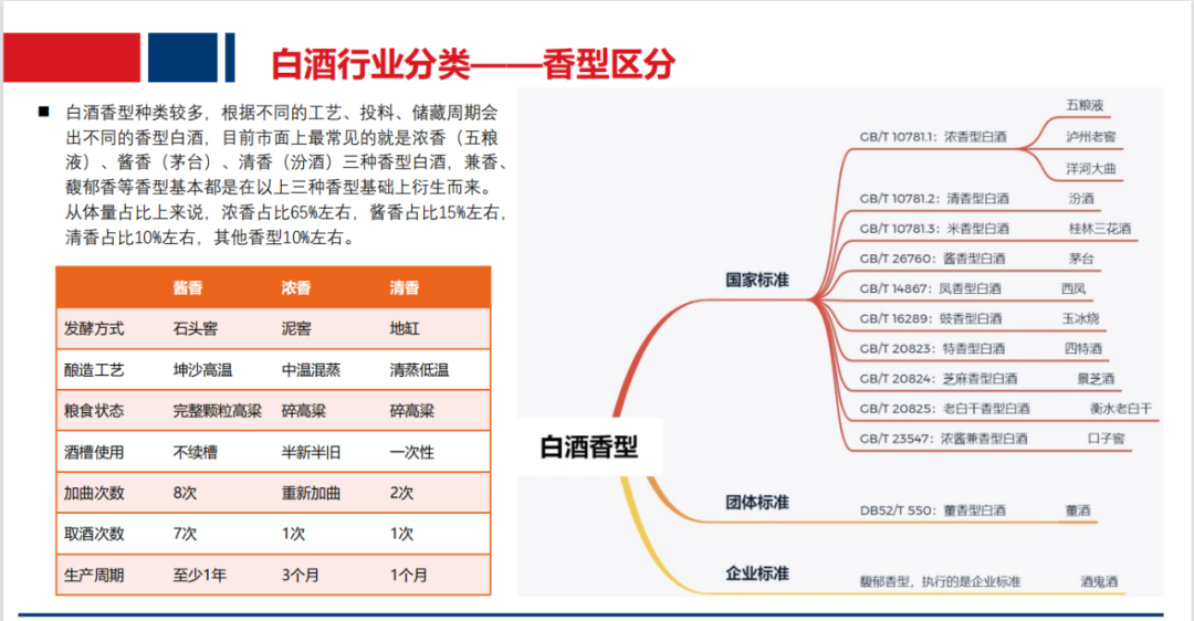 《白酒工业术语》由中国国家标准化管理委员会设立,属于国家市场监督管理总局的管辖范围。该标准根据香气特征将白酒分为12种香型。主流香型包括浓香型、酱香型及清香型。