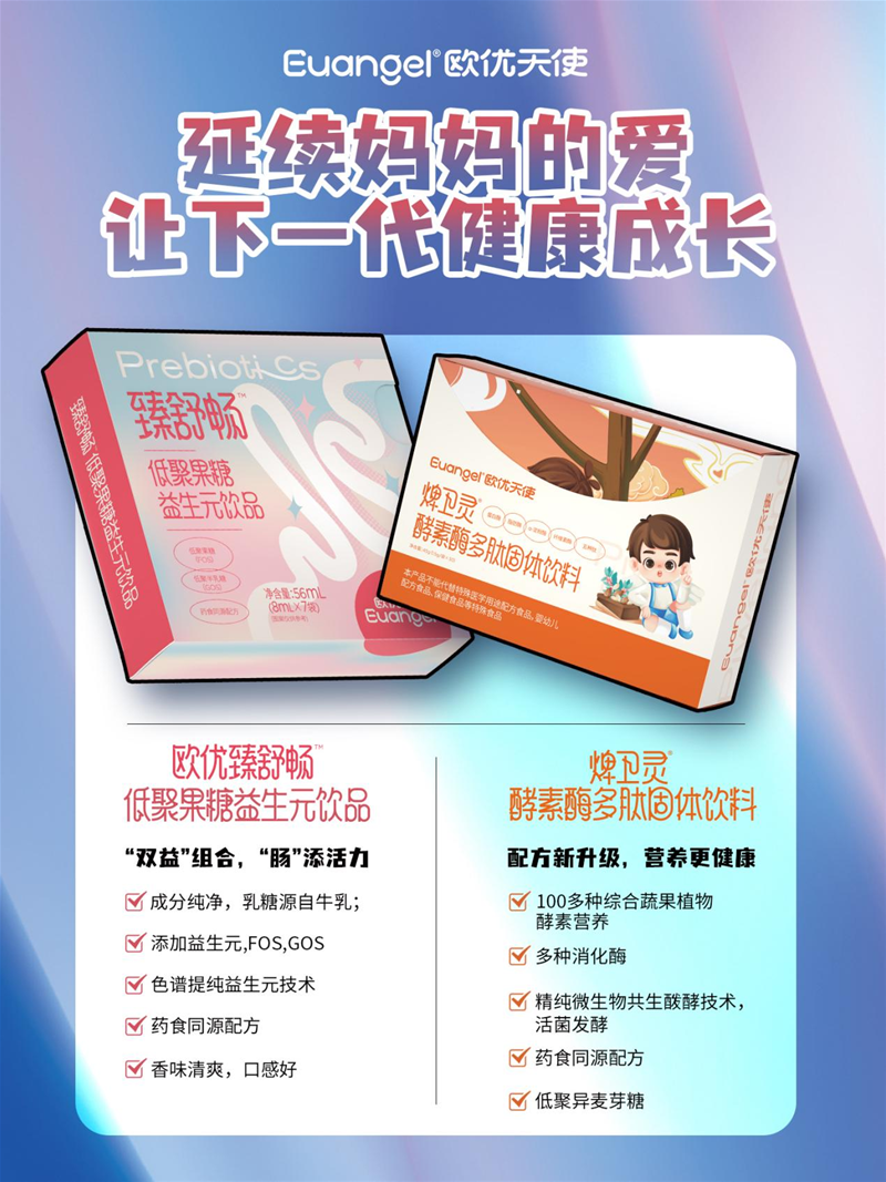 欧优天使消化系统系列新推出“焷卫灵酵素多肽固体饮料”,100多种种综合蔬果植物发酵,完整保留蔬果酵素营养;药食同源配方,添加山楂、麦芽、陈皮、鸡内金等中草药;五种植物肽,能将食物中的营养大分子迅速分解成小分子;口味好,食品营养丰富。