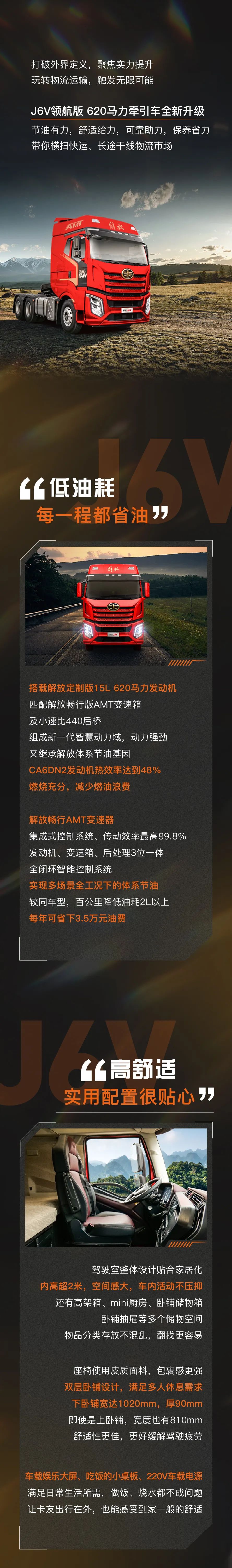 名车博览丨又舒适又能跑!J6V领航版620马力牵引车助力卡友全程稳盈