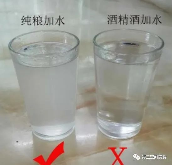 简单来说,就是在酒中加一点纯净水,那么好酒孬酒便立马一目了然了,如果是纯粮食酒,那么加水后会变浑浊,而添加剂勾兑的酒则不会。