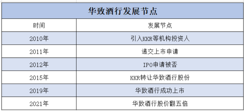 吴向东被业内称呼为“白酒教父”,拥有极其庞大的白酒资产,包括16家酒企、两千余家连锁酒行。其中金六福和华致酒行更是他的得意之作。上世纪末,中国市场经济方兴未艾,白酒行业刚刚克服了粮食短缺问题,大型酒企发展思路开始从从增产量向扩渠道转变。值此之际,五粮液推出OEM模式,金六福就是在这种模式下应运而生。随后搭上央视快车,重金推广之下,金六福打开了品牌知名度,成为有口皆传的“中国人的福酒”。自然而然地,金六福开始全国逐渐起量,甚至一度成为销量最高的白酒品牌。在这之后就是吴向东借壳策划上市。至此,吴向东的财富完成了第一次指数级的增长,这一周期也不过十年。现在看来,珍酒从成立,到造势并上市的流程与金六福惊人地相似。起量、融资、交表这一套下来,一路行云流水。除了金六福与珍酒,华致酒行更是吴向东投资头脑的完美展现。在华致酒行时期,吴向东已经初步形成了自己的白酒投资版图,涉及投资、生产、销售各个领域。别人眼中的高光,只是吴向东的日常操作。这一次珍酒的上市迷雾中,还有一个角色不容忽视,就是有着“华尔街之狼”诨号的机构投资人KKR。根据KKR的投资金额和股份占比推算,目前KKR账户浮亏逾亿港元。KKR与吴向东的渊源可以追溯到华致酒行时期。2010年KKR作为外部投资人入股华致酒行,不过KKR只短暂的持有其股份五年。2015年,在华致酒行IPO被否后便黯然离场。不过此次投资金额与相应估值并没有披露,KKR此次投资的收益我们无从查证。