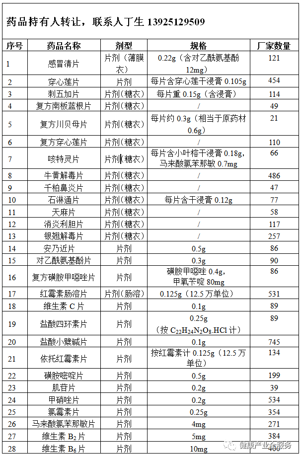 药品批件转让公告