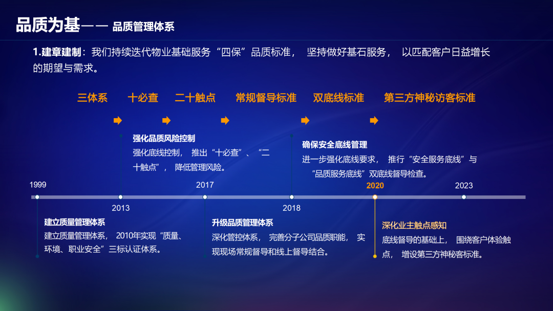在整个发展过程中,我们不断围绕行业的认知,不断提高、升级对于行业品质的理解,这背后是人与业主之间深度互动的结果。