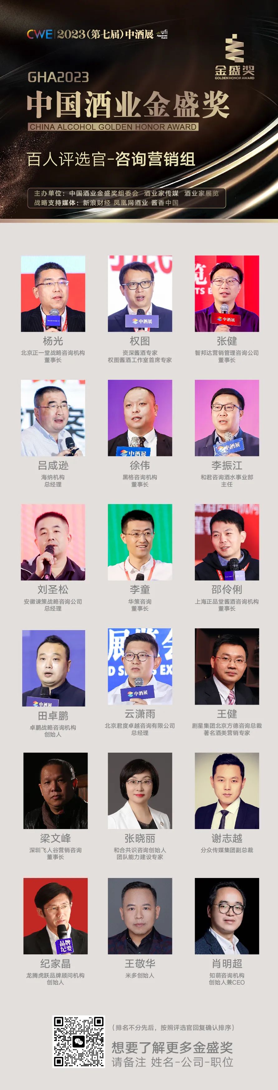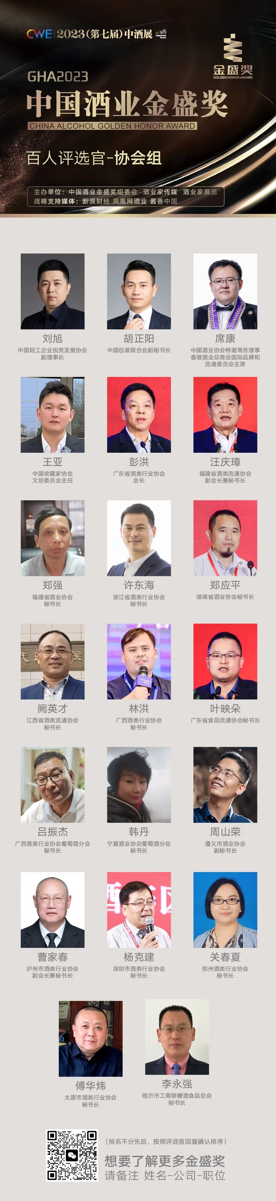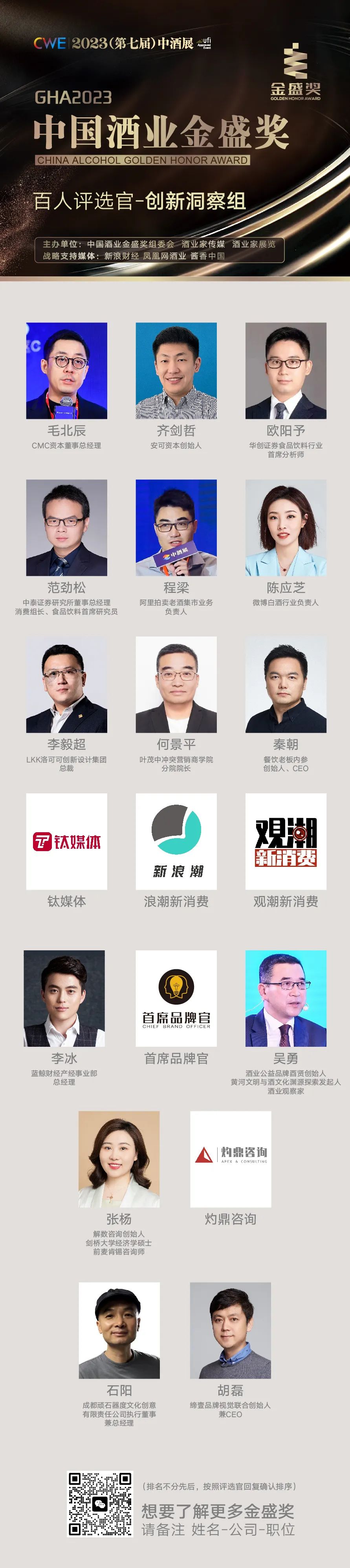 接下来,组委会邀您一睹2023中国酒业金盛奖百人评选官阵容!