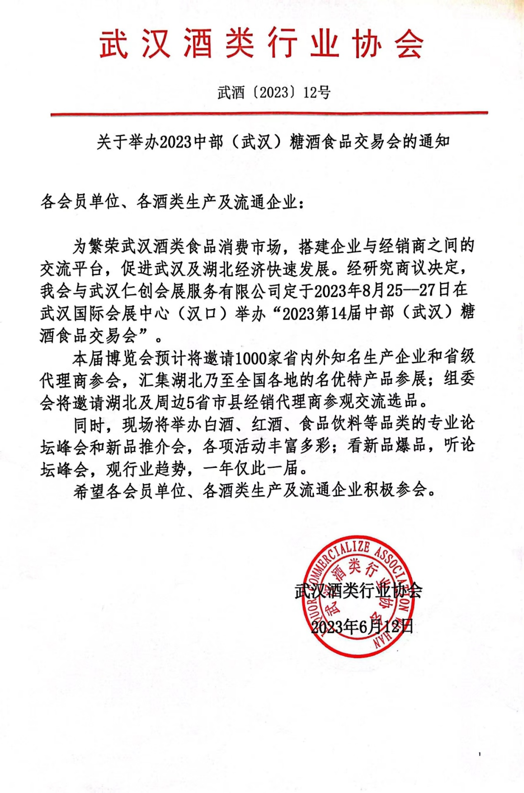 武汉酒类行业协会是武汉糖酒会主办单位之一。从2013年起,武汉酒类行业协会开始主办中部武汉糖酒会,到2023年,已经是主办中部武汉糖酒会的第10个年头了。