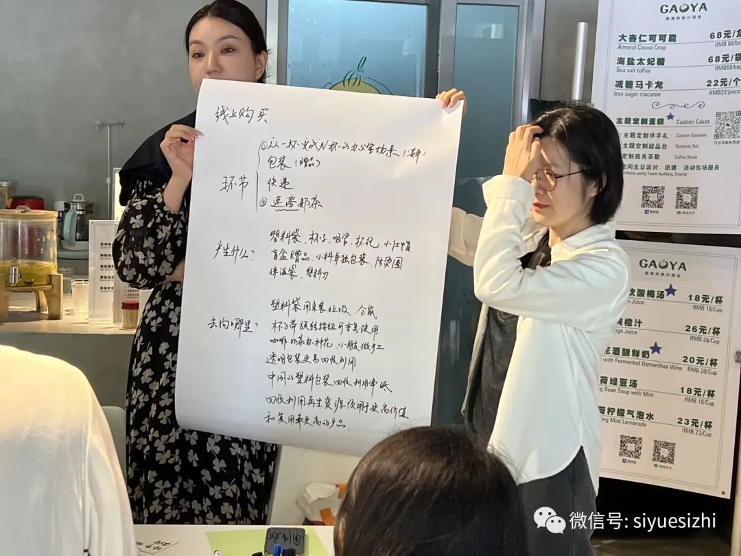 与会者中,大家提出了很多想法,但基本没有什么新意,其中以自带杯为概念的打算以模仿咖啡品牌操作的概念还算是对减塑有所助益,但我个人感觉实际操作可能难度系数很大。