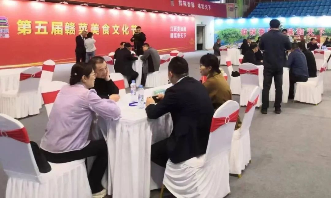 现场成功对接洽谈订单19笔,签约总额3.35亿元,涉及冷冻果汁、农蔬、瓜果、水产、禽肉类、调味料、干货食材等产品。其中,江西果然食品有限公司“臻果然”冷冻果汁产品5600万元,大余马蹄山生态农业开发有限公司“马蹄山”麻鸭鲜肉、富硒板鸭1500万元,赣州市晟阳餐饮管理有限公司“食点乐”预制菜系列产品1000万元。