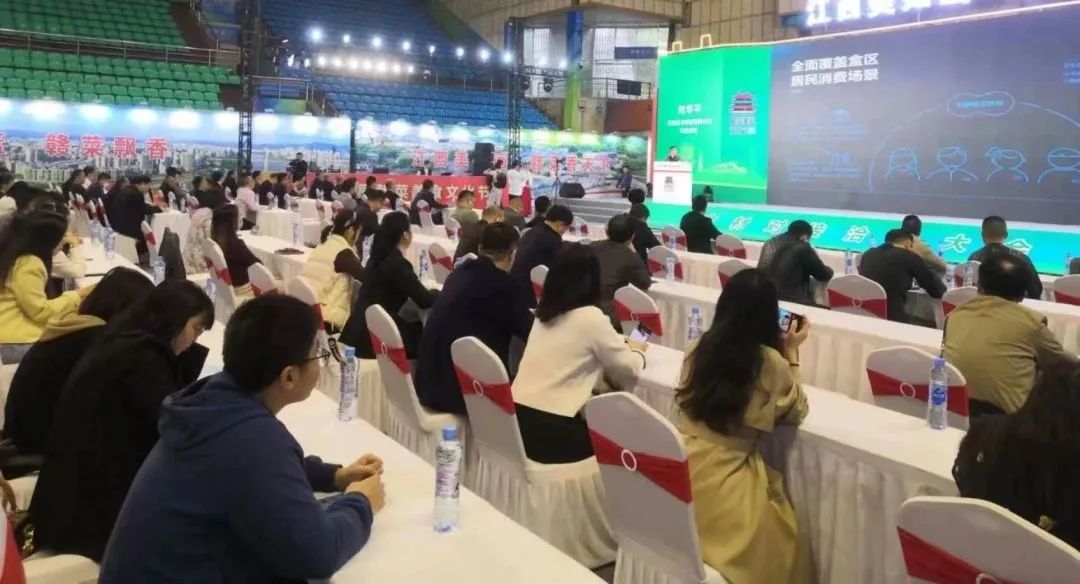 4月3日,赣粤食材对接洽谈会在赣州市体育中心举行。来自省内外采购商、供应商和互联网平台、供应链餐饮企业等150多家企业参加会议。