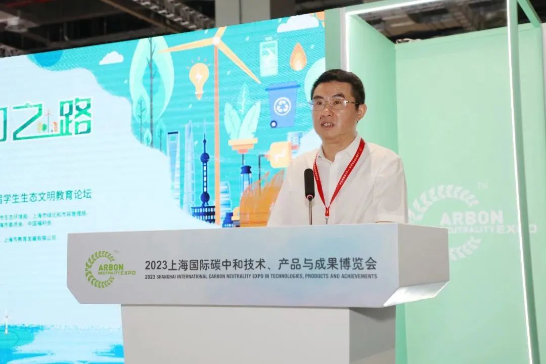 6月11日下午,由市教委、市发展改革委、市经济信息化委、市生态环境局、市绿化市容局、市交通委、市机管局、市粮食物资储备局、团市委、中国福利会十部门共同主办的第五届上海市学生生态环保节开幕式暨学生生态文明教育论坛在上海国家会展中心举行。现场还举行了第二届上海市青少年“双碳”方案提案大赛启动仪式和《生态文明教育课程建设探索系列》丛书发布仪式。市教卫工作党委副书记、市教委副主任闵辉,市绿化和市容管理局副局长方岩,市交通委副主任叶兴,市机关事务管理局副局长张晓卯,共青团上海市委副书记王江,市生态环境局二级巡视员杨春林,市粮食和物资储备局副局长殷飞及各委办局相关负责人出席活动。
