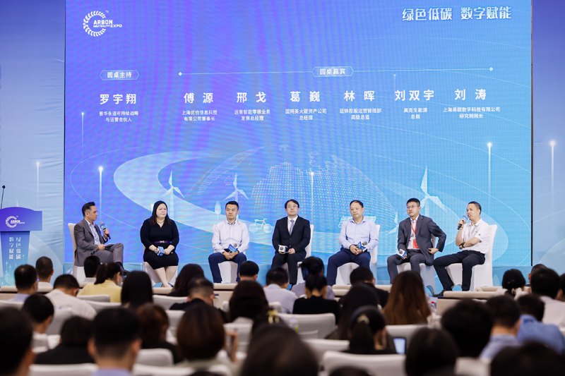 论坛举行圆桌会议,国网英大碳资产公司总经理葛巍、延锋控股运营管理部高级总监林晖、远景智能零碳业务发展总经理邢戈、美克生能源总裁刘双宇、上海优也信息科技有限公司董事长傅源、上海易碳数字科技有限公司研究院院长刘涛围绕国内企业在节能减碳领域面临的主要挑战,深度交流、思想碰撞,为“绿色低碳,数字赋能”聚智慧和力量。