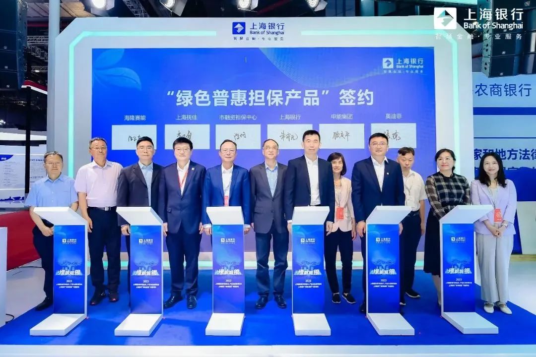 在碳博会活动现场,上海银行与市融资担保中心、申能碳科技公司共同推出上海市首个绿色普惠担保贷款。抚佳化工、海隆赛能、奥迪菲环境作为首批客户,与上海银行、市融资担保中心及申能碳科技公司共同签订意向合作协议。