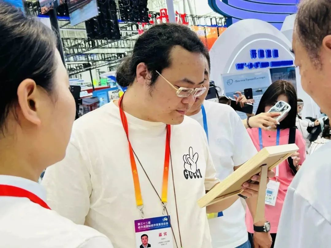 2023年6月15日,第三十二届哈尔滨国际经济贸易洽谈会在哈尔滨国际会展体育中心开幕。旨在共建高水平展示新平台、高质量发展新机遇,鸡西市文体广电和旅游局携入选中国版画展作品—王伟和《冬季恋歌》等鸡西版画亮相鸡西展区。