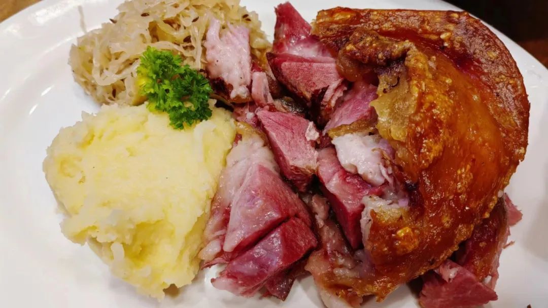 脆皮烤猪膝配酸椰菜和土豆泥:“友人”强烈安利的菜品,皮脆肉烂,确实还挺好吃的,而且这一盘很顶饱,必点项。