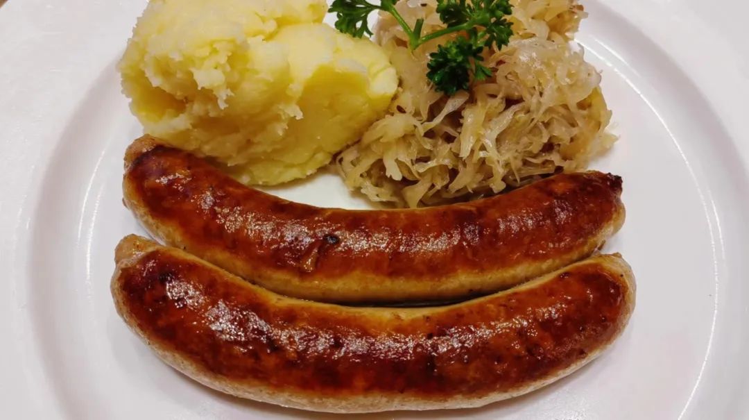 杜塞尔多夫辣味猪肉肠配士豆泥酸椰菜:个人是不太能区分德式和俄式猪肉肠有什么区别,或许并没有区别,肉肠中规中矩也不辣,那个酸椰菜挺上头,不次于东北酸菜的酸度。