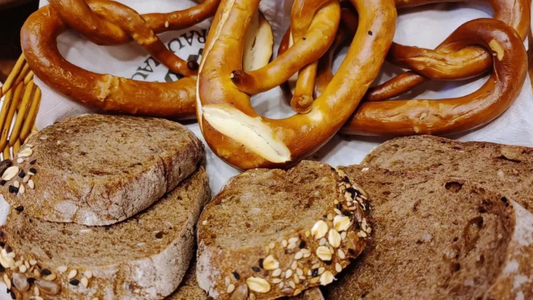 综合面包篮配三种面包酱:那个环状的面包第一次吃,刷新了我的认知,它的硬度是可以和法棍媲美的,甚至可能还强上一点,咀嚼得好累。
