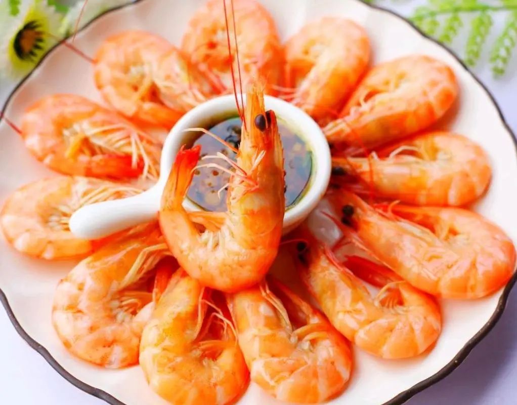 ②水煮虾(明虾46g,生姜1g,小葱1g,盐1g)