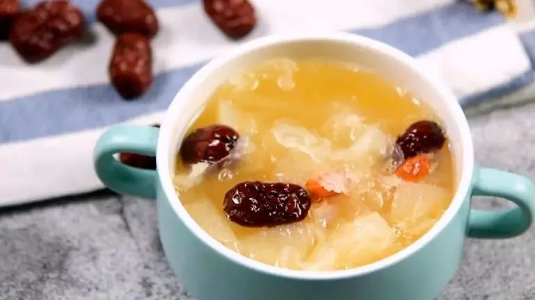 红枣银耳羹(红枣9g,银耳3g,白砂糖3g)
