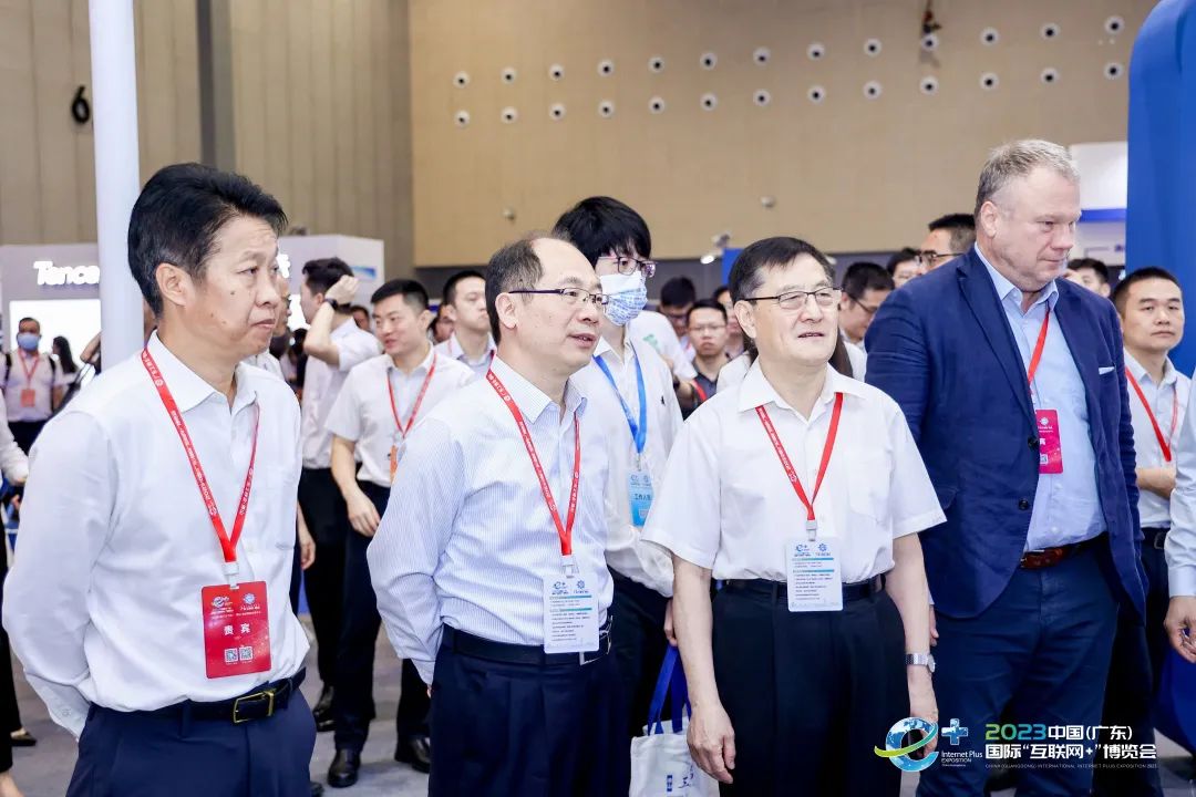 国际欧亚科学院院士、科技部科技体制改革研究会会长 张景安;中国工程院院士 谭建荣;广东省贸促会(广东国际商会)党组成员、副会长 姚信敏;佛山市人民政府副市长 乔羽;中国德国商会华南及西南地区执行董事 马廷坤(Martin Klose);三龙湾科技城党工委副书记、管委会主任 潘东生;佛山市贸促会党组书记、会长 李德共同为2023中国(广东)国际“互联网+”博览会启幕。