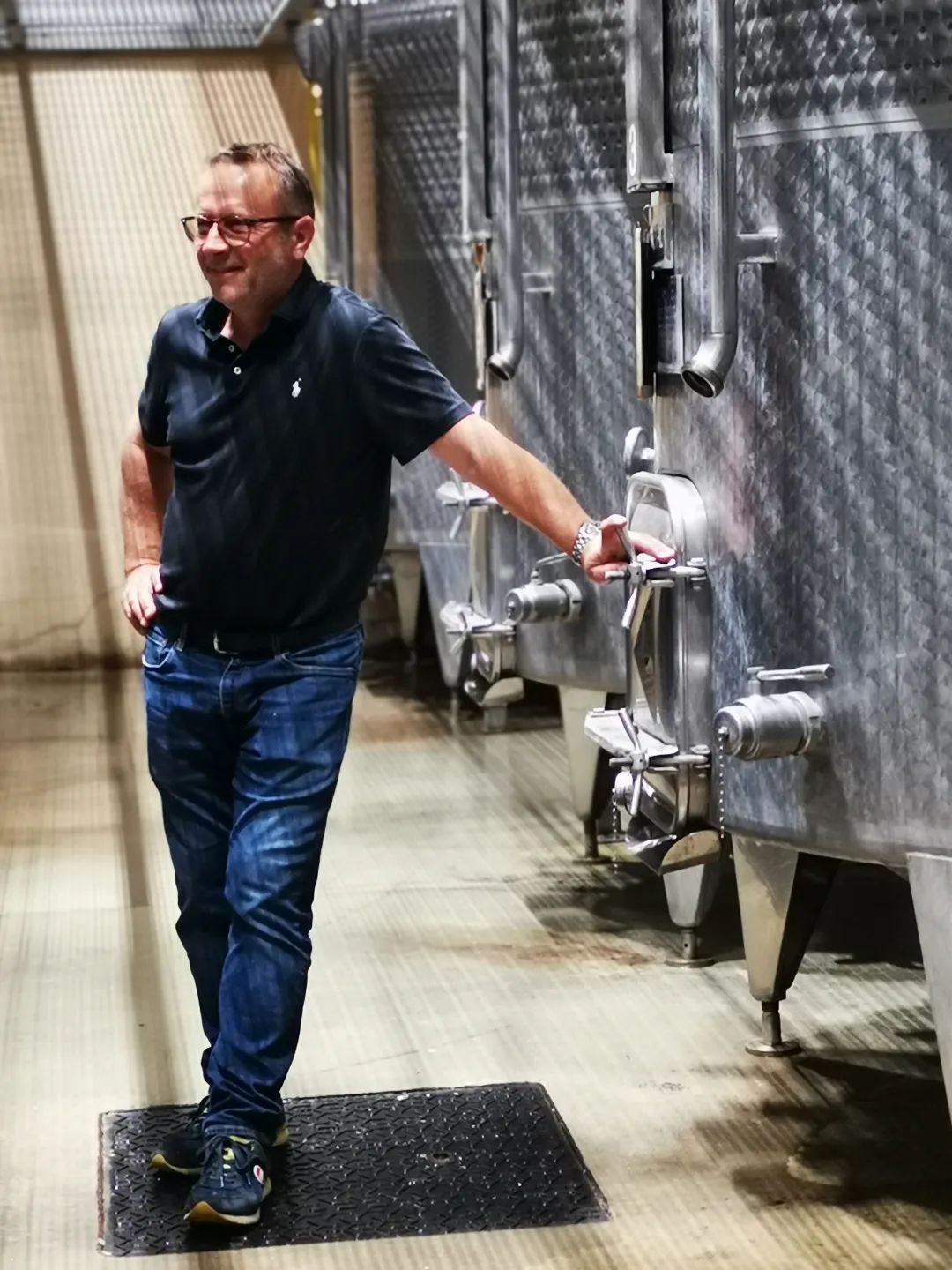 他 8岁时就跟着他爷爷种葡萄树,后面跟着他爸爸学习了 20 多年。如今他爷爷已经去世,爸爸也已经退休,酒庄由他负责。他爷爷最初发展葡萄酒事业时只有 3 公顷土地,通过 3 代人努力,目前有将近 80 公顷的葡萄园。