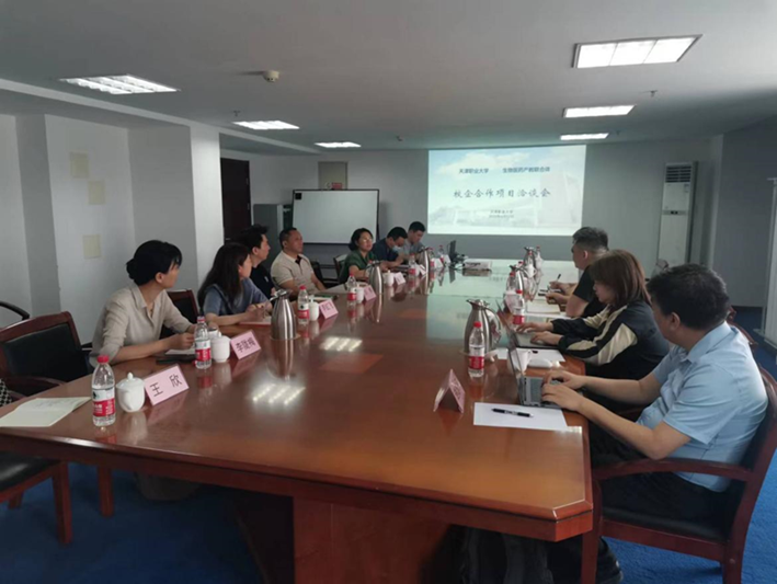 2023年6月12日,天津生物医药产教联合体秘书长潘麒程一行四人与天津职业大学生物与环境工程学院(以下简称:生环学院)进行了校企合作项目洽谈。生环学院和合作办的领导、老师参加了洽谈会。