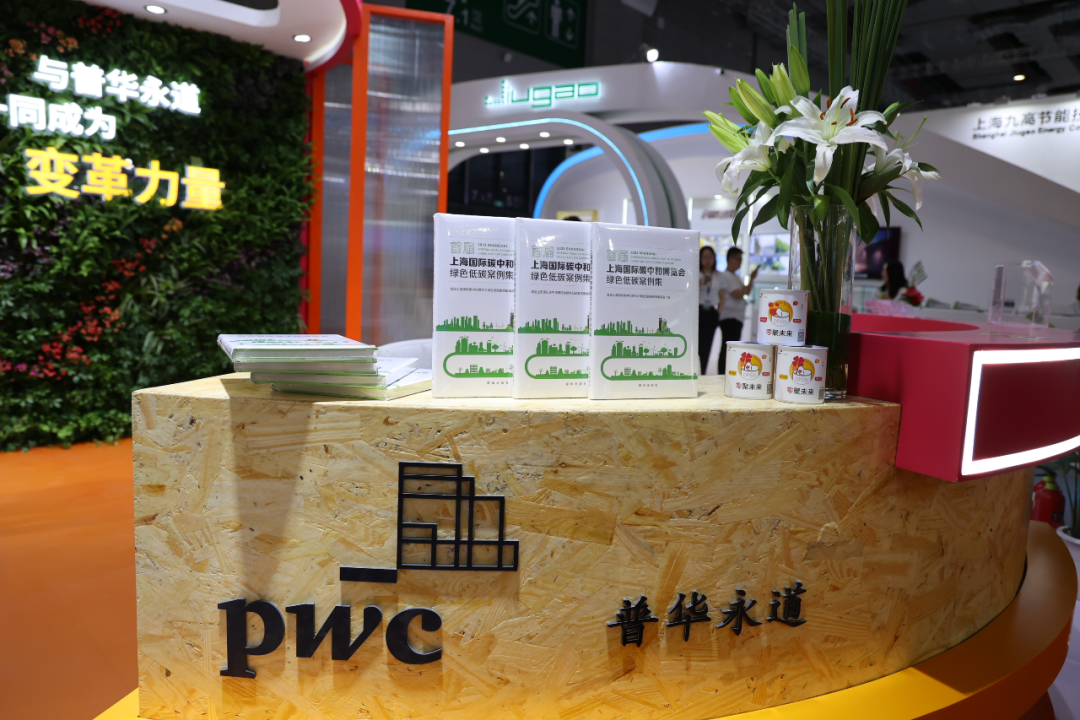 普华永道展区摆放的《首届上海国际碳中和博览会绿色低碳案例集》。