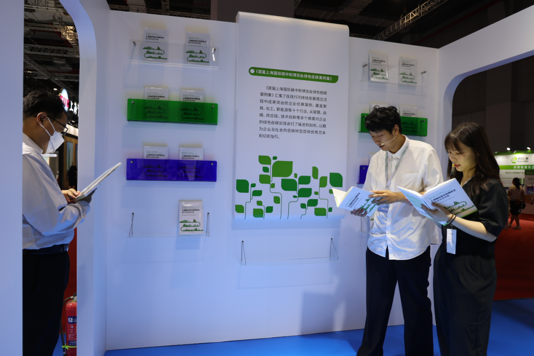 《首届上海国际碳中和博览会绿色低碳案例集》展示专区吸引了多位参展观众驻足。
