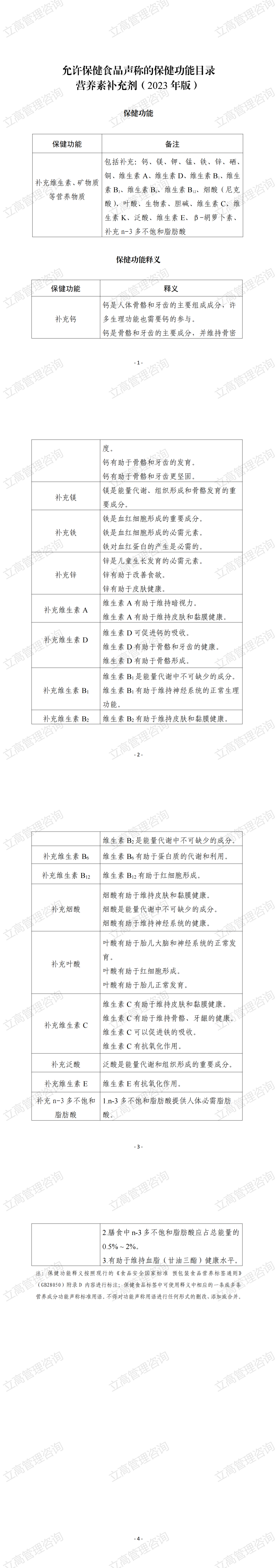 《允许保健食品声称的保健功能目录 营养素补充剂(2023年版)》