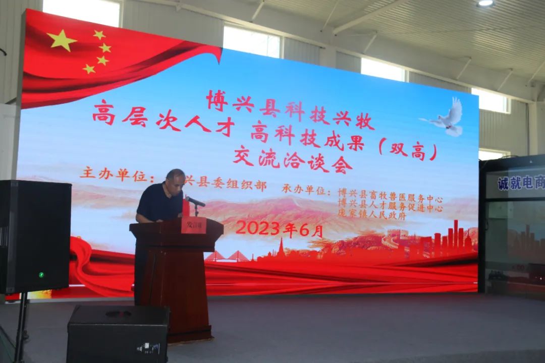 为扎实推进人才强县建设,助力我县畜牧业高质量发展,6月15日,由县委组织部主办,县畜牧兽医服务中心、县人才服务促进中心、庞家镇人民政府联合承办的科技兴牧高层次人才、高科技成果“双高”交流洽谈会在庞家镇成功举办。本次洽谈会邀请到来自中国农业科学院植物保护研究所、山东大学等7所高校、科研院所的12名博士团专家,同时组织新盛食品、现代畜牧、博大禽业等20余家畜牧龙头企业有关负责人参加。活动分为两个阶段,上午为观摩调研,下午为成果推荐及座谈交流。县委副书记李亚光,县委组织部副部长、县委编办主任刘艳东,县畜牧兽医服务中心党组书记、主任刘炳强,县人才服务促进中心主任孙魁,庞家镇党委副书记、镇长刘永峰参加活动。