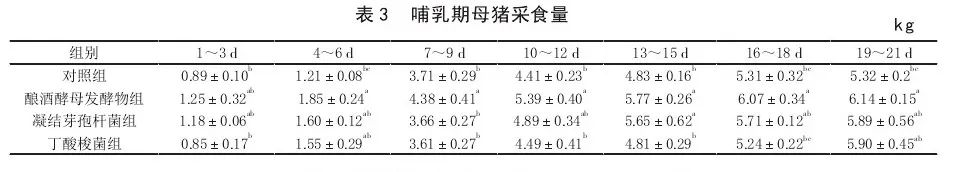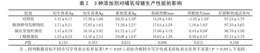 酿酒酵母发酵物、凝结芽孢杆、丁酸梭菌对哺乳母猪繁殖性能的影响