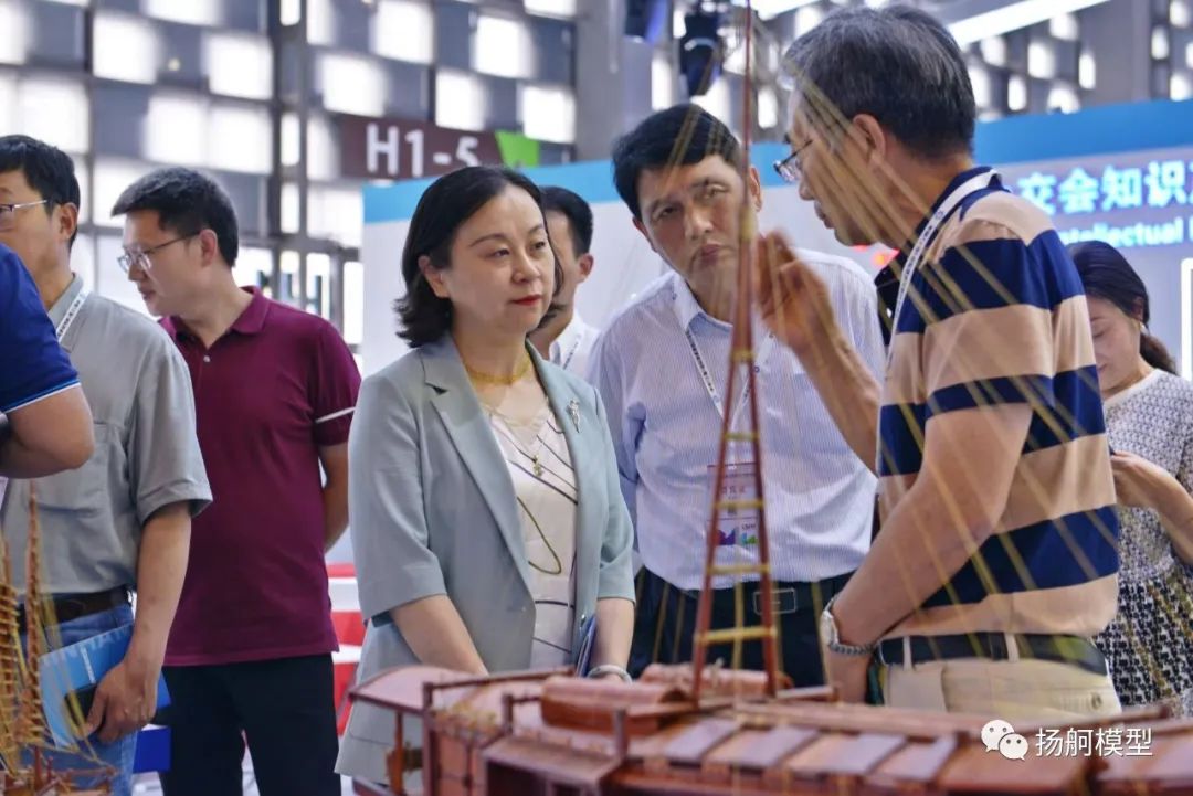 “当代工匠”杨生美接待领导,解说船模历史渊源和相关制作过程。