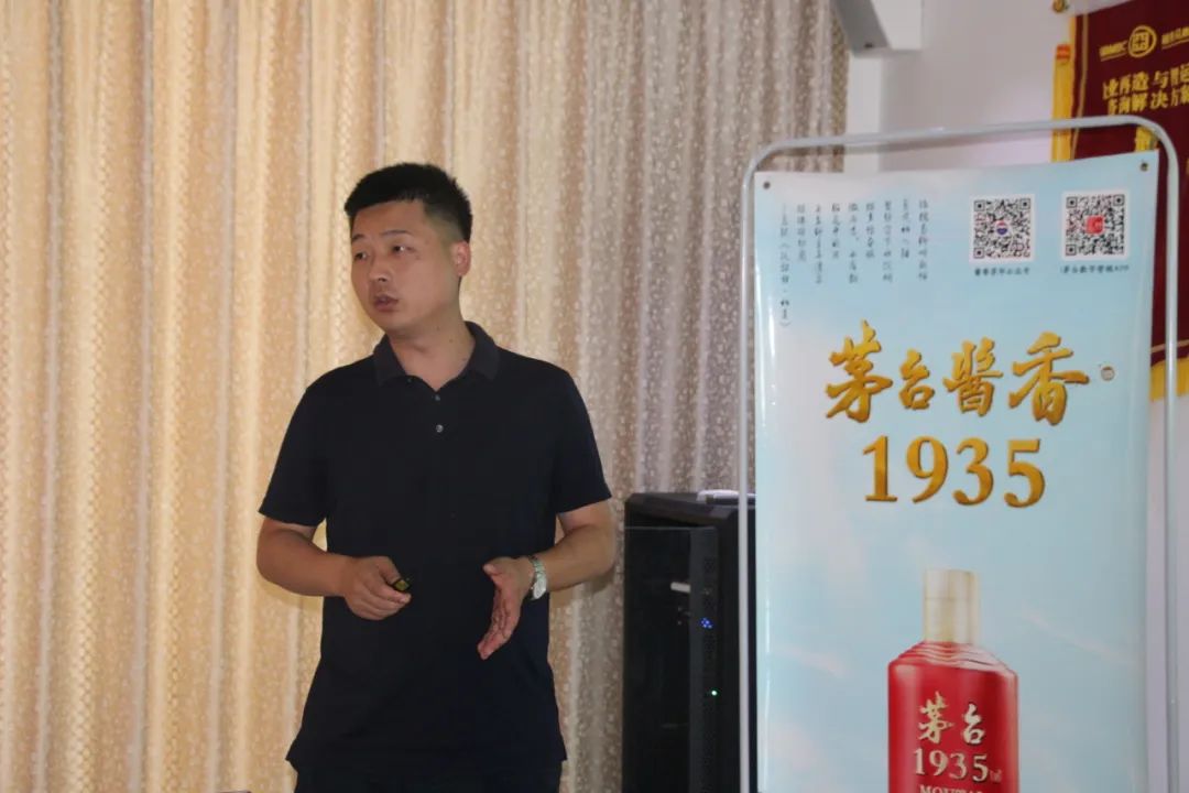 贵州茅台酱香酒营销有限公司山东一区销售经理朱珍贵详细介绍了茅台酱香系列酒的酿造工艺和文化内涵,并重点介绍了本次走进企业的茅台1935。茅台1935,作为茅台股份重磅推出的品饮雅鉴级产品,每一个生产环节,都用工匠大师般的技艺,熔铸着“质量是生命之魂”的质量信仰,体现着对新时代五匠质量观的价值操守。