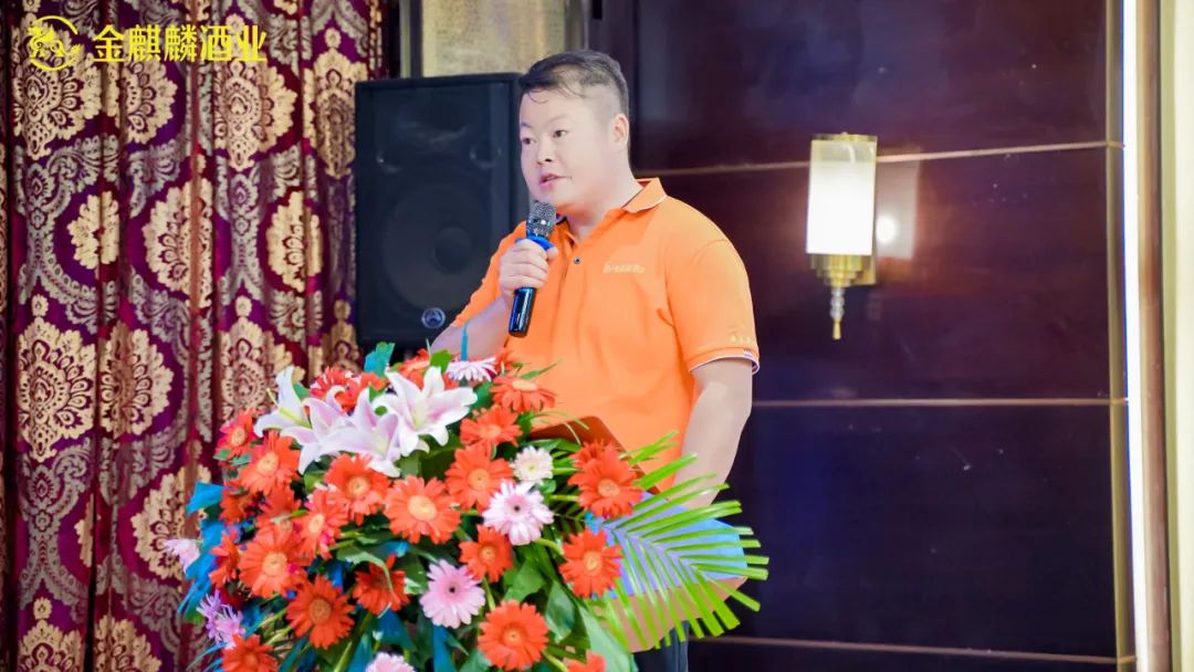 ▲陕西金麒麟酒业营销策划有限公司咸阳大区经理杨党博陕西金麒麟酒业营销策划有限公司咸阳大区经理杨党博致祝酒辞,他提到金麒麟酒业与踔汇行商贸的合作可谓是强强联手,相信在两者的共同努力和精诚合作下,在广大经销商的鼎力支持下,尊贵金酱酒一定会蓬勃发展,并在市场大放异彩。