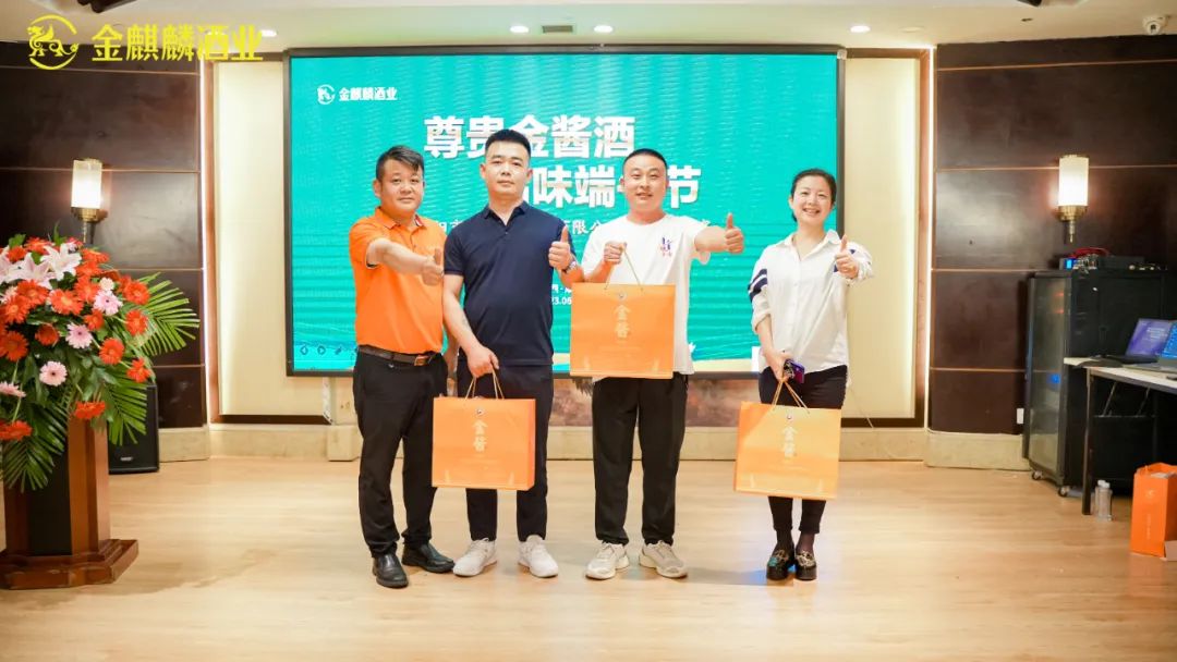 在服务水平提升和加强市场管理方面,金麒麟酒业始终坚守“诚信经营,和谐发展”的经营理念,用诚信、敬业、创新、感恩八字方针作为金麒麟精神;全心全意服务好各级客户。随着尊贵金酱酒品牌知名度的不断提升,目前尊贵金酱酒的“自点率高、复购率极高”,已成为其在终端市场的瞩目亮点,在陕西市场的商务宴请、婚宴等消费场景动销势头强劲,倍受广大消费者的青睐。“路虽远,行则将至”。金麒麟酒业在创新发展的道路上不断前行,将继续以做大品牌、大市场为目标。此次端午客户答谢会的成功举办,是2023年以来尊贵金酱酒继府谷、礼泉品牌推广会之后召开的又一场大会,接下来随着尊贵金酱酒不断拓疆扩土,省内其它各地市场的品牌推广会还将陆续上演,让我们共同期待。相信,2023年随着多场次,高规格大会在全省各地的相继举办,尊贵金酱酒定会在三秦大地香飘万里,再创佳绩。