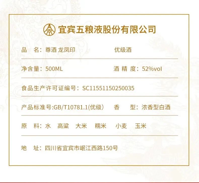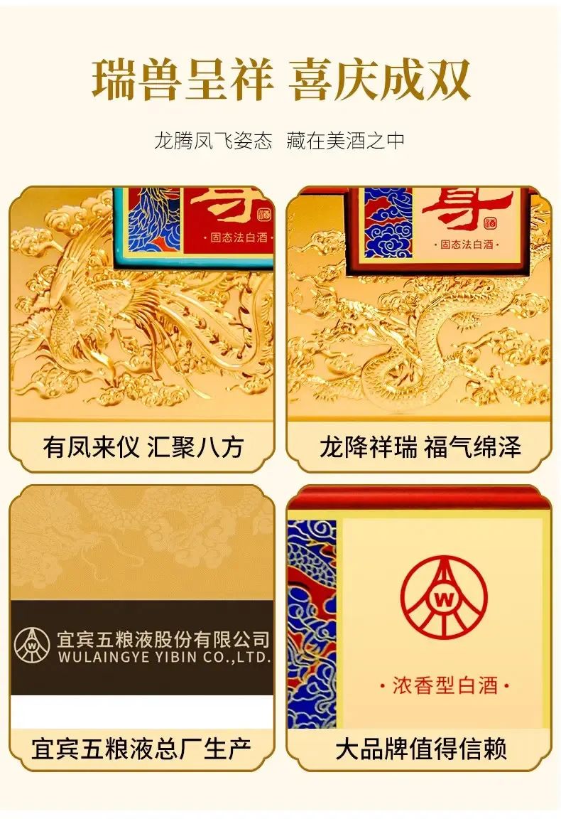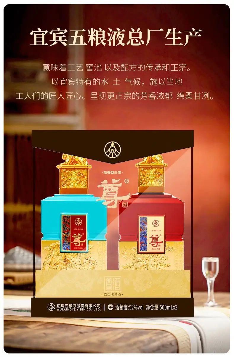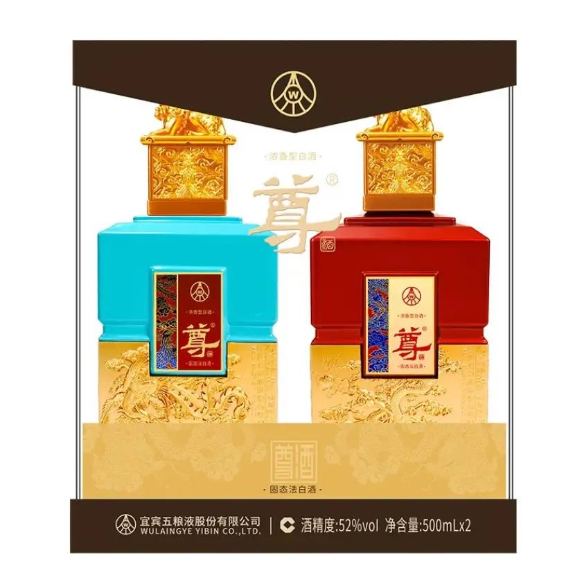 五粮液52度浓香型白酒尊酒龙凤印2瓶500毫升礼盒装
