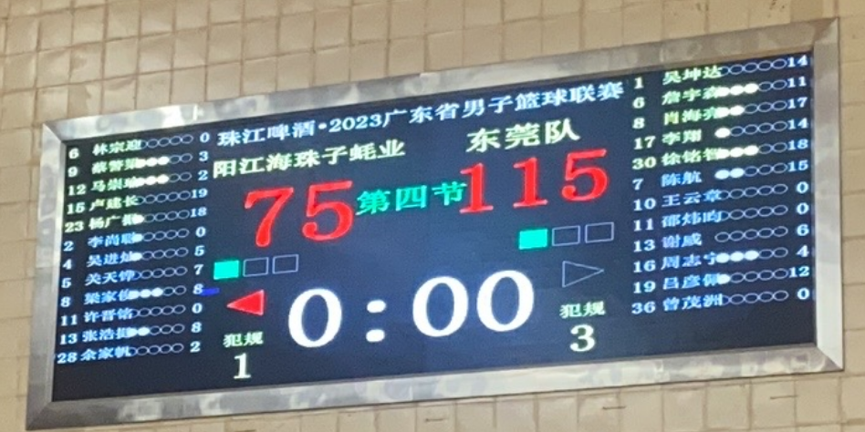 第三节比赛继续,河源队稳扎稳打,湛江队防守反击,但命中率不高,最终被河源队利用默契配合、内线优势,拉开分差,湛江队暂停回来后发力把比分追至个位数,第三节比分,54:59,河源队领先5分进入最后一节。