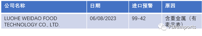 6月份,美国FDA更新了进口预警名单99-42,因重金属问题对我国一家食品企业实施不经检验自动扣留。