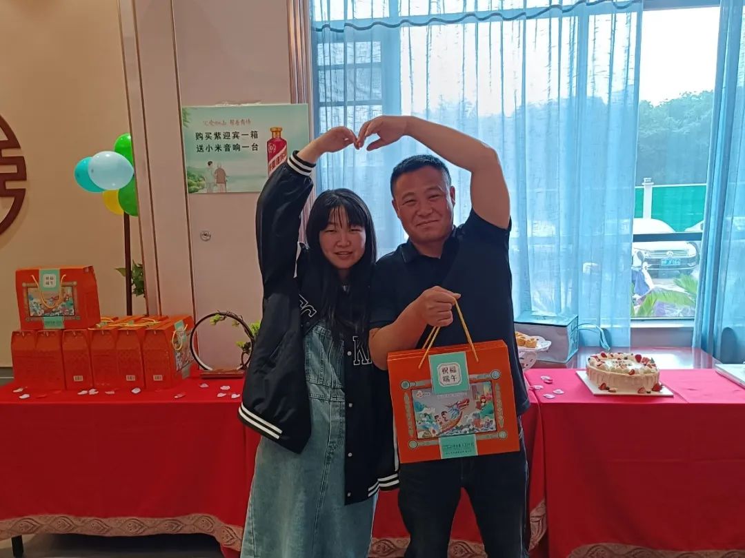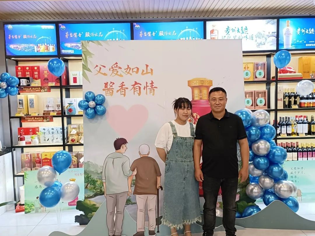 在主题终端超然酒库高新店店内,超然公司准备了父亲节蛋糕、精美的甜点、果盘还有端午节粽子,与店内茅台迎宾酒氛围相互映衬、美美与共。各位父亲和子女们一起亲密互动合影,并在现场写下父亲节寄语,深情的向父亲告白,场面温馨感人。