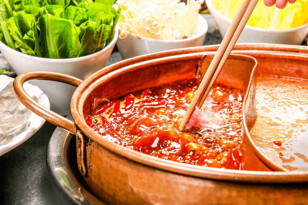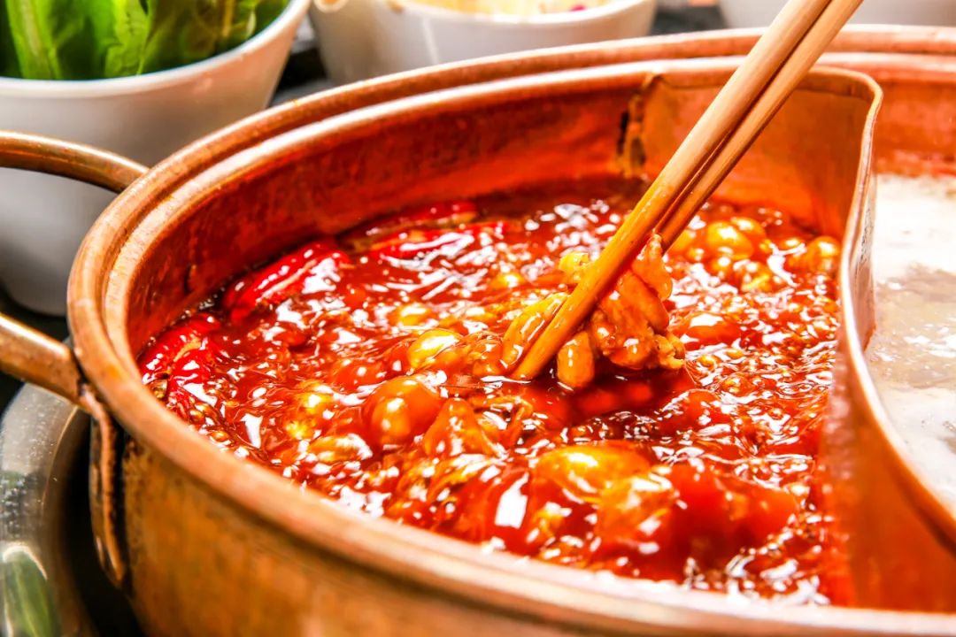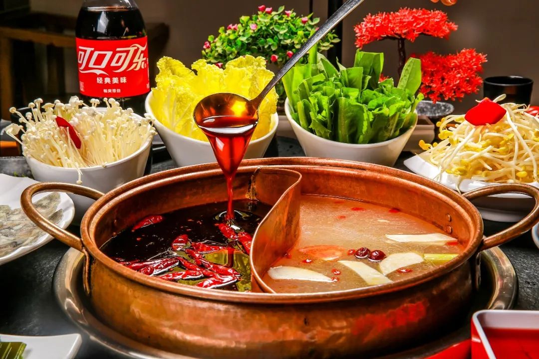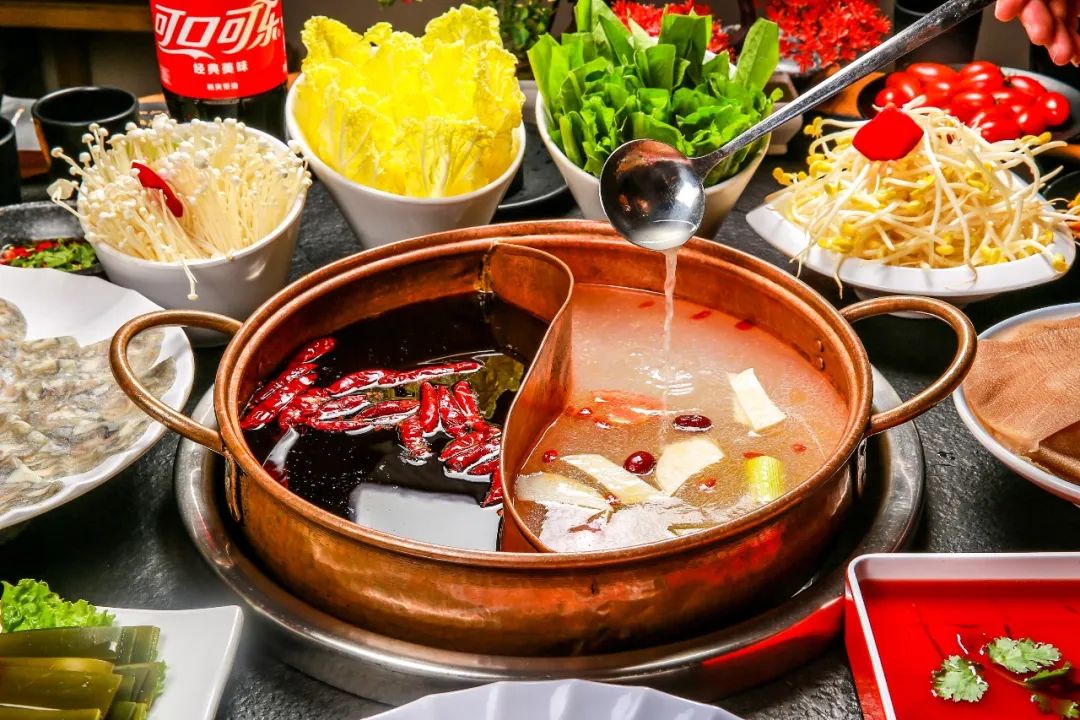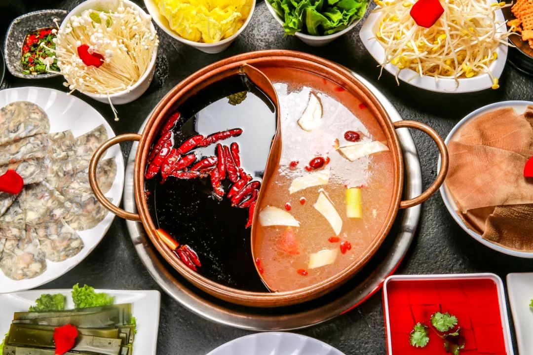经典鸳鸯锅底,热气氤氲,麻辣香醇