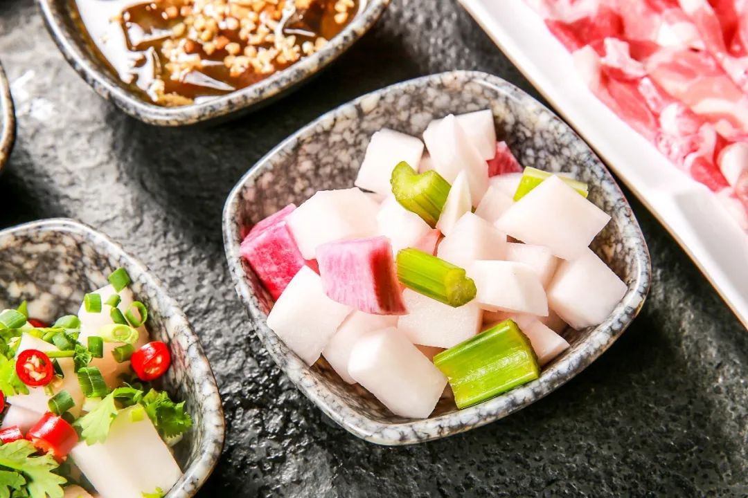 好友围坐一圈,一桌美味,荤素菜品涮起来