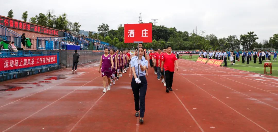 上午9时,全体职工翘首以盼的运动盛会正式拉开序幕。伴着振奋人心的《运动员进行曲》,前导方阵、裁判员方阵和独具特色、尽显风采的各支参赛代表队一一入场亮相。运动员们步伐矫健、精神饱满,迈着铿锵的步伐、喊着响亮的口号阔步经过主席台,充分展示了酱酒人积极向上、健康阳光的工作状态和勤劳勇敢、开拓进取的拼搏精神。