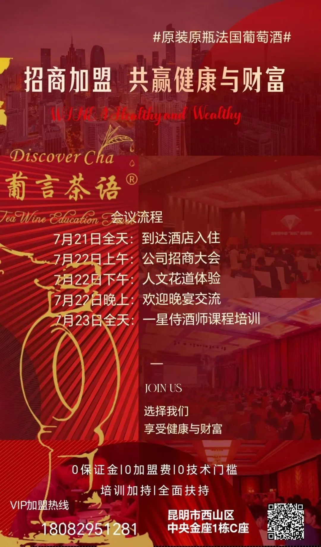 后疫情时代,大家更加注重健康和品质生活。为了更好的为大家葡萄酒爱好者和经销商服务,我们特向全国发出邀请函,邀约您参加7与22日和7月23日举行的解析法国进口葡萄酒招商会暨国家级葡萄酒一星课程培训,具体安排如下: