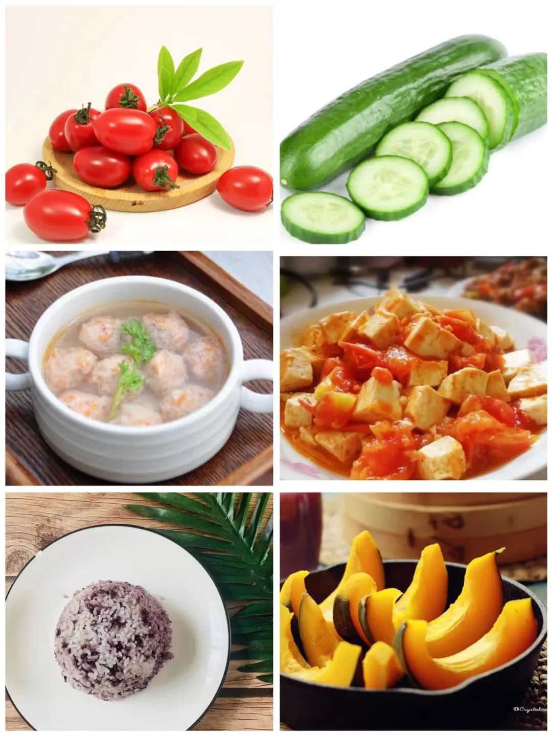 午 餐:虾仁鲜肉丸、番茄豆花、奶白菜炖粉条、香米米饭、清香玉米粥