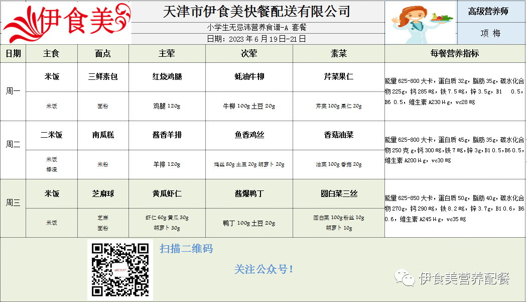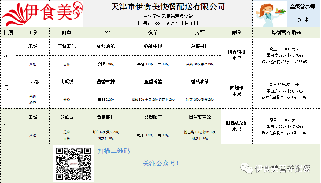 根据天气变化、市场原材料供应情况,菜品会有微调,以下菜谱展示仅供参考,具体用餐情况请以每天实际送餐为准,感谢理解!
