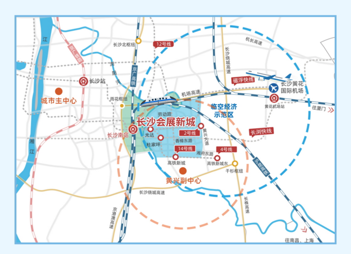 4个高速互通口(5公里): 京港澳高速、长株高速、绕城高速无缝对接;