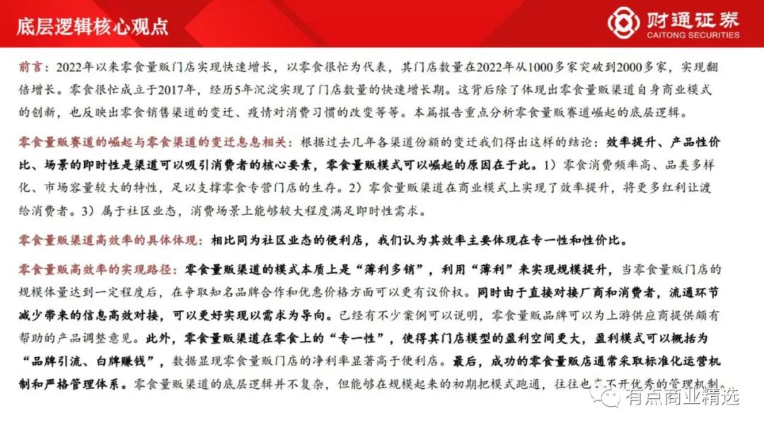这背后除了体现出零食量贩渠道自身商业模式的创新,也反映出零食销售渠道的变迁、疫情对消费习惯的改变等等。本篇报告重点分析零食量贩赛道崛起的底层逻辑。