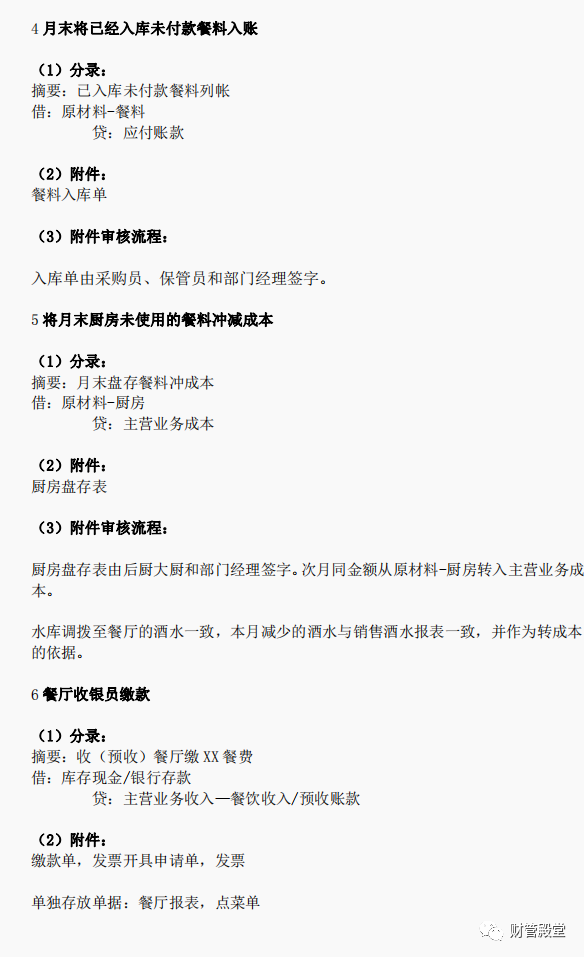 餐饮行业会计分录