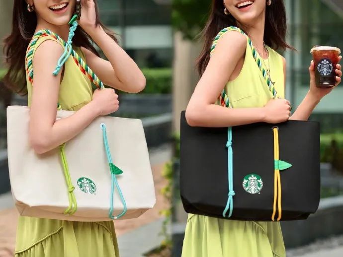 以星巴克为例,其从2008年将星冰粽带入内地市场至今,未曾错过一次端午节,今年,星冰粽推出了萌檬咖星冰粽和荔椰星冰粽两种全新口味,除了节前买享受优惠,也同步推出星冰粽周边。冰尚款、冰逸款两款礼袋以端午五彩绳为灵感来源,以双色麻花绳提手和同色系的蓝黄装饰绳,搭配黑色与白色大容量帆布托特包,成为年轻人端午节的“社交货币”,彰显一种潮流态度。