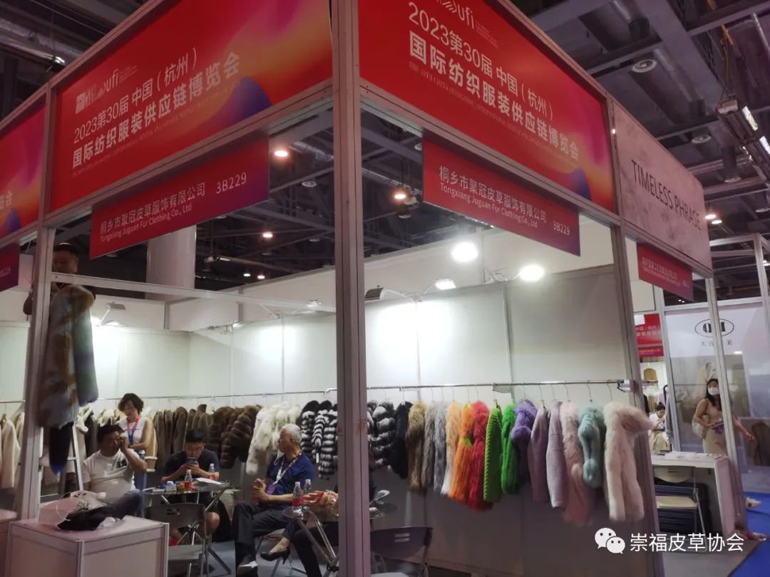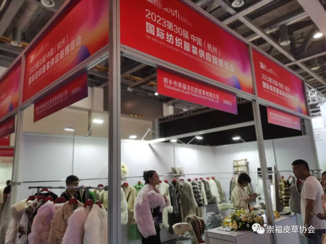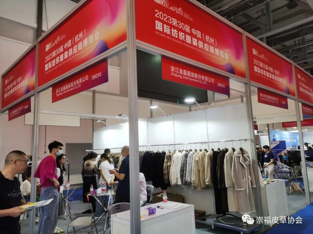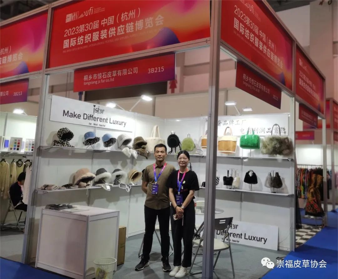 在崇福皮草协会的组织下,金磊、东马、振源、惊石、君傲、聚冠、法拉妮、冬巴拉、泓澄、缘丰、众宇、诺儿、百网、枫杰14家皮草企业首次亮相杭州展。