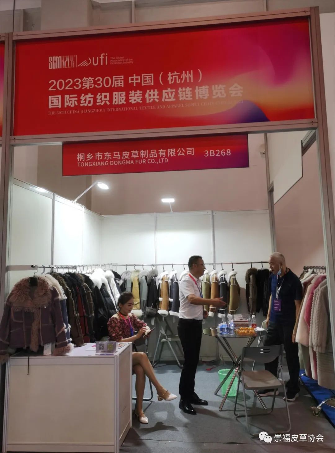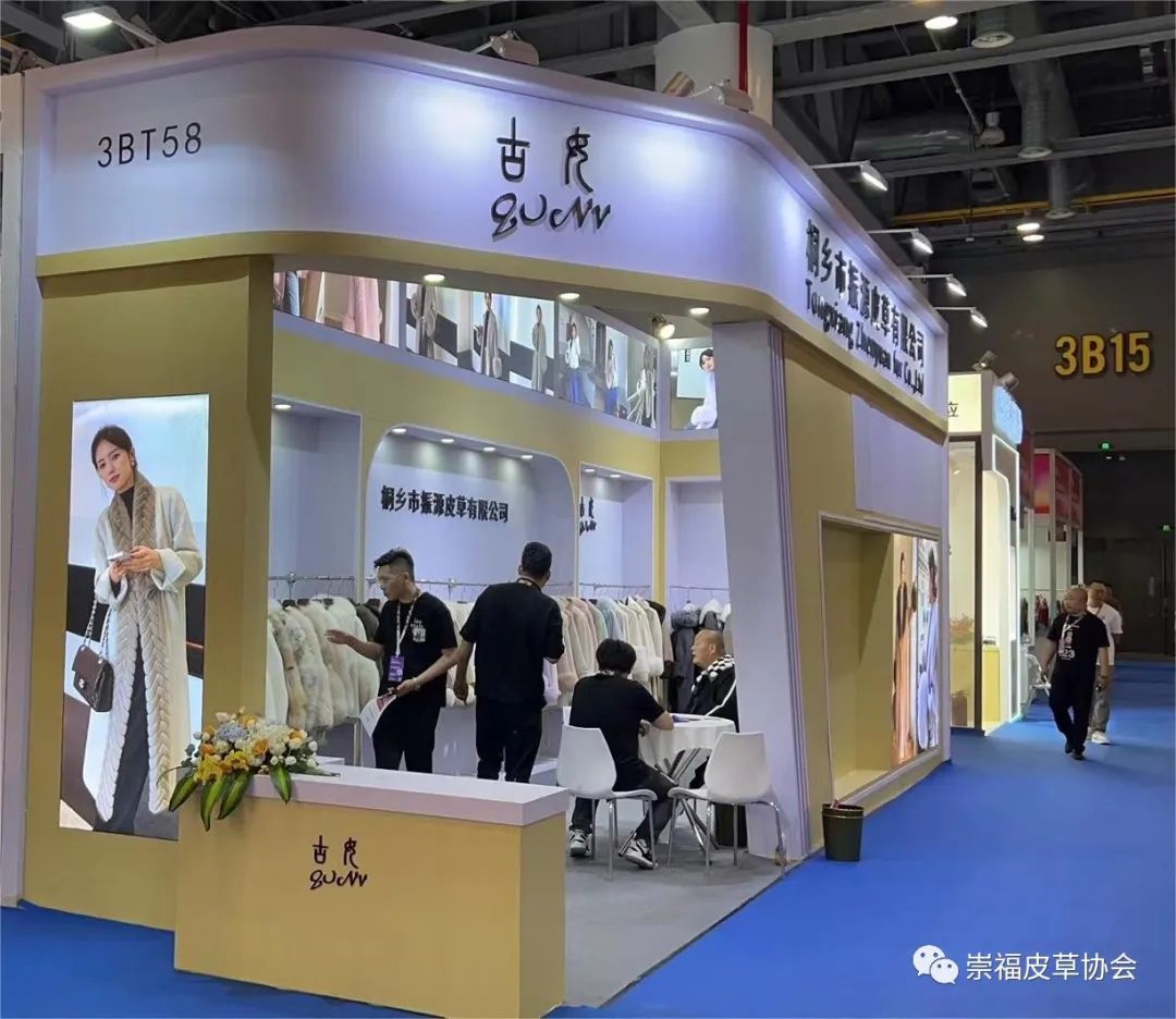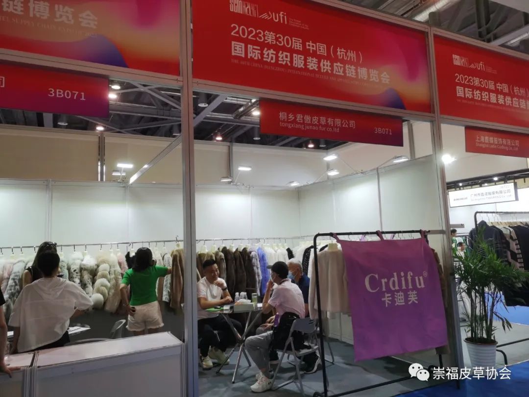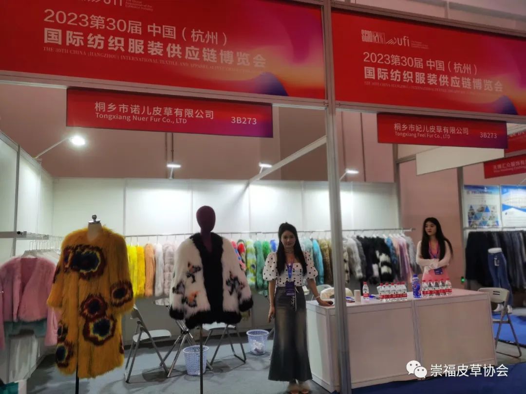 在崇福皮草协会的组织下,金磊、东马、振源、惊石、君傲、聚冠、法拉妮、冬巴拉、泓澄、缘丰、众宇、诺儿、百网、枫杰14家皮草企业首次亮相杭州展。